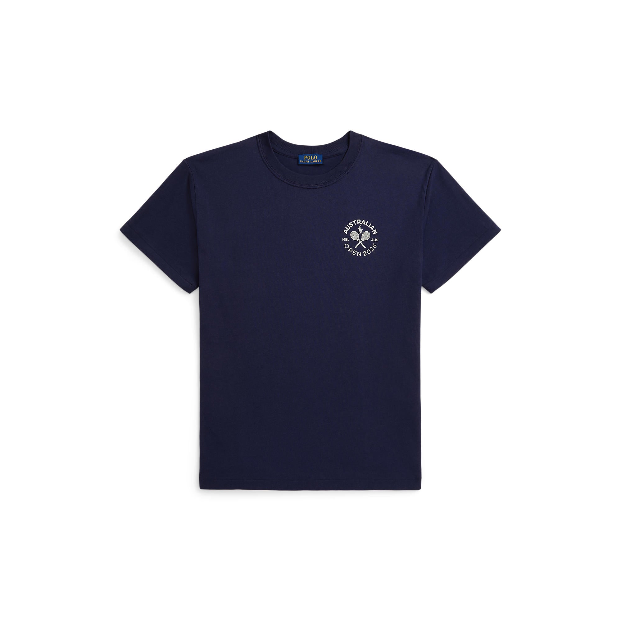 Part of our commemorative Australian Open capsule collection for 2026, this cotton jersey tee takes inspiration from last year’s winning graphic logo. It features a circular motif of the iconic tournament’s location and year united with two crossed tennis racquets and Ralph Lauren’s signature Pony at the center front.