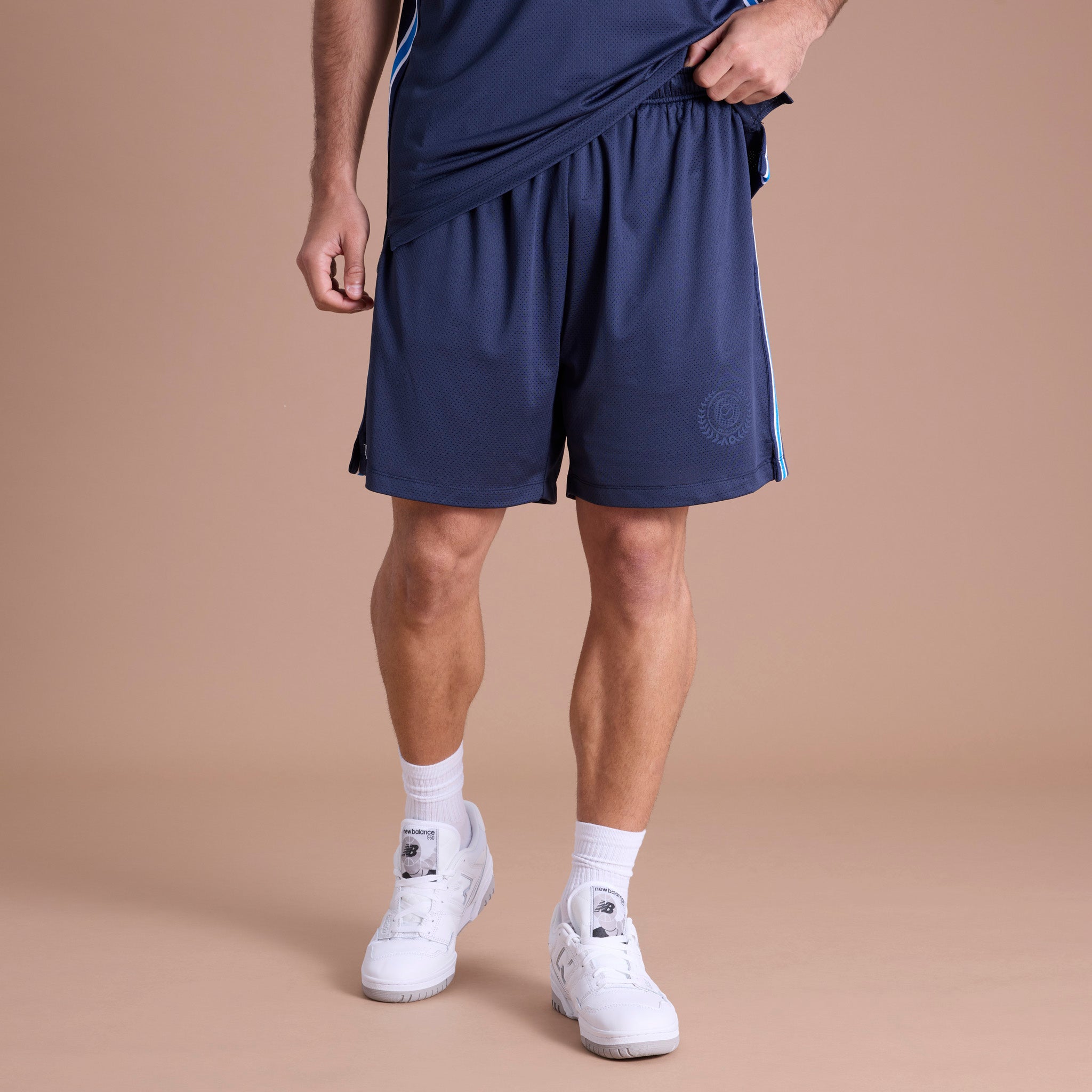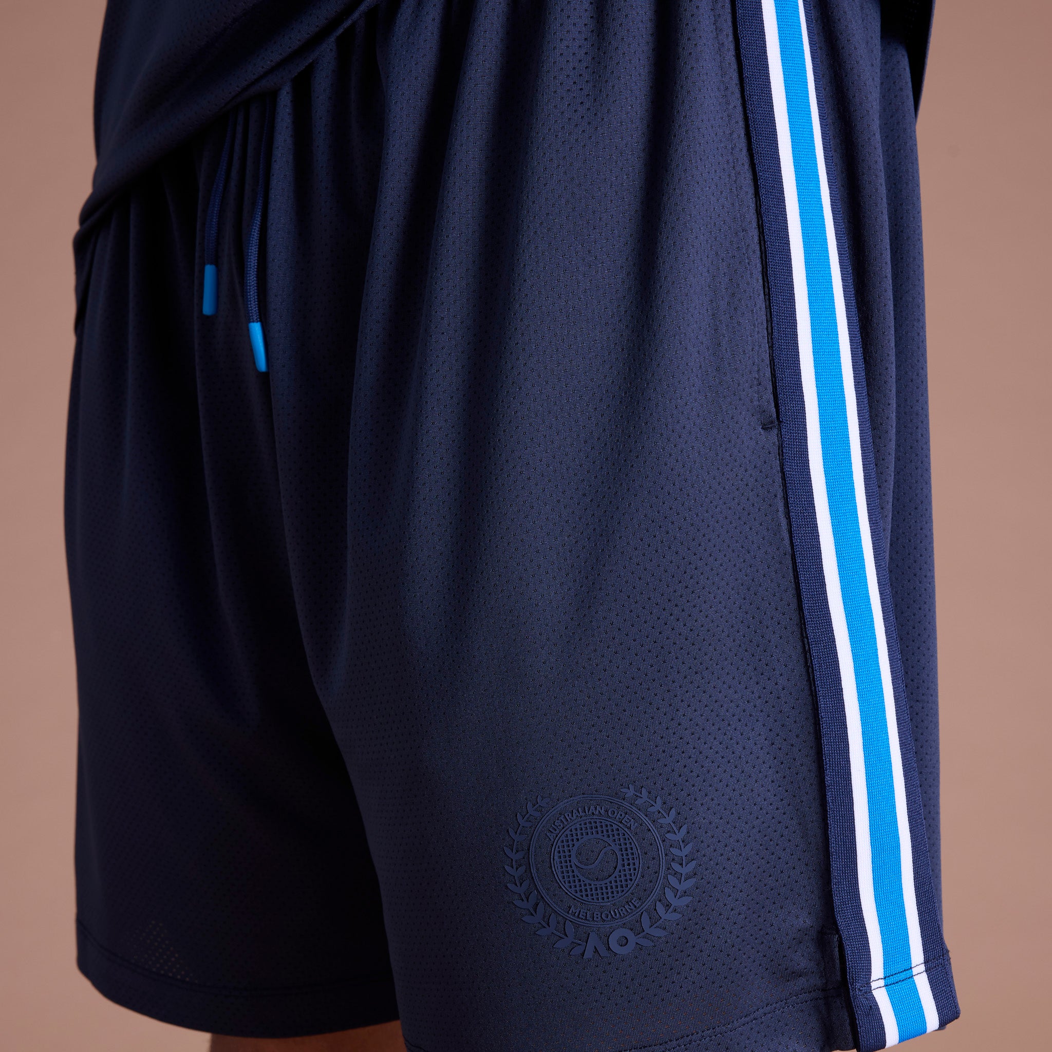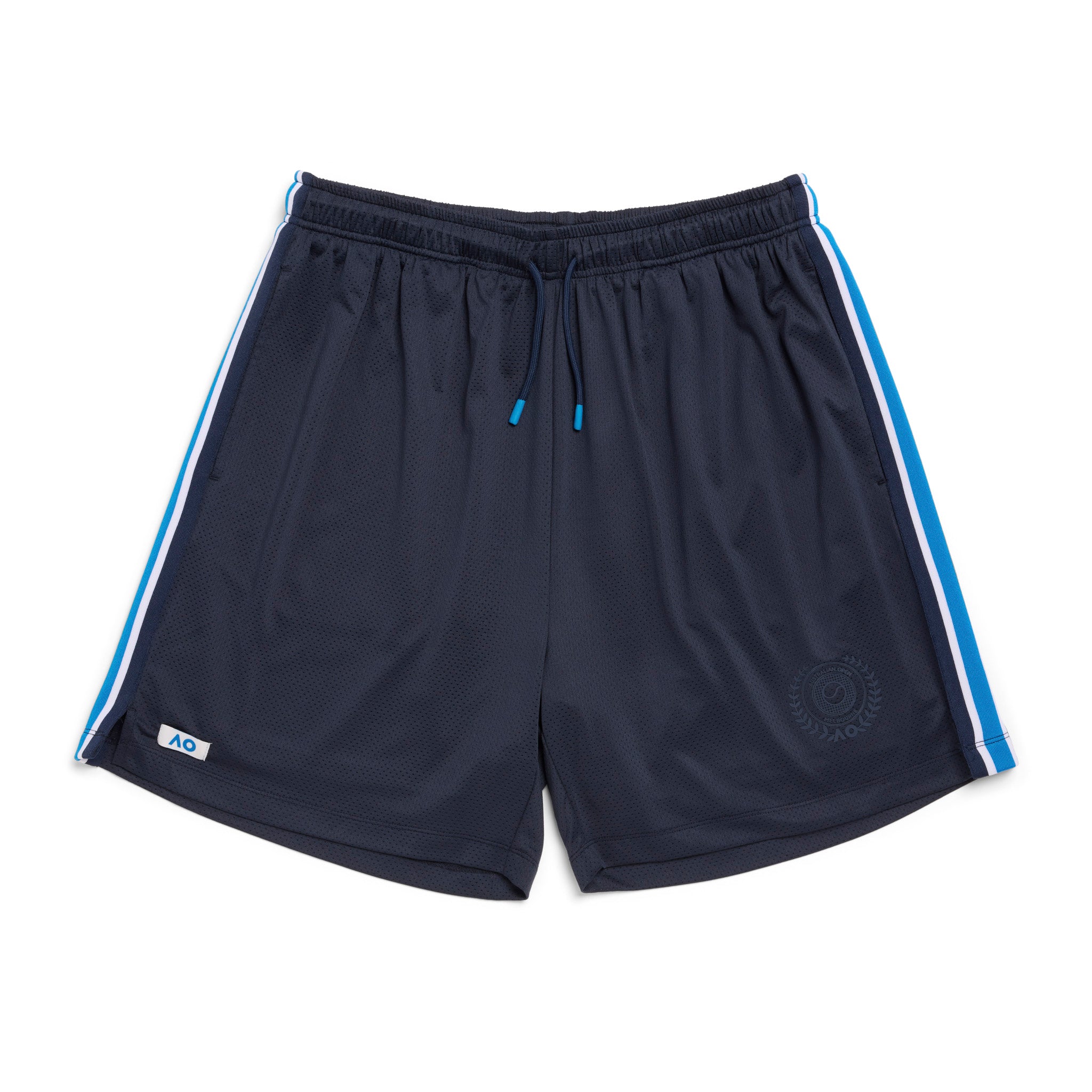 Stay cool with these Mesh Shorts, crafted from lightweight micro mesh fabric with a breathable self-lined design for enhanced airflow and comfort. Featuring sporty striped woven tape and a woven satin label, perfect for training, courtside, or casual wear, these shorts combine signature AO performance with standout style.