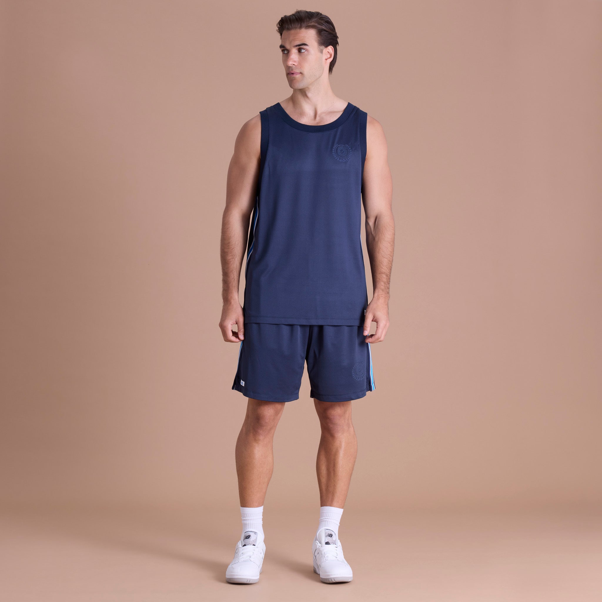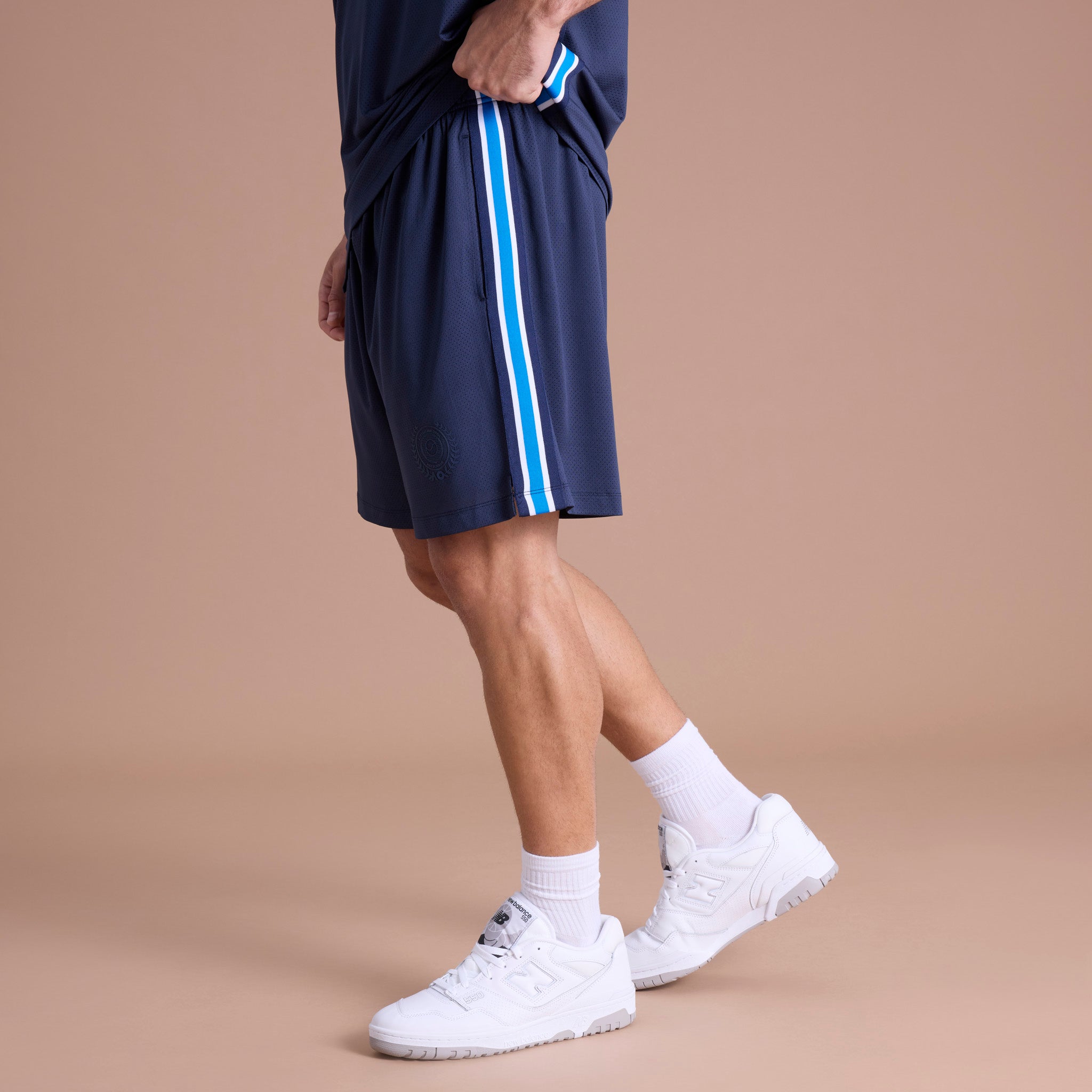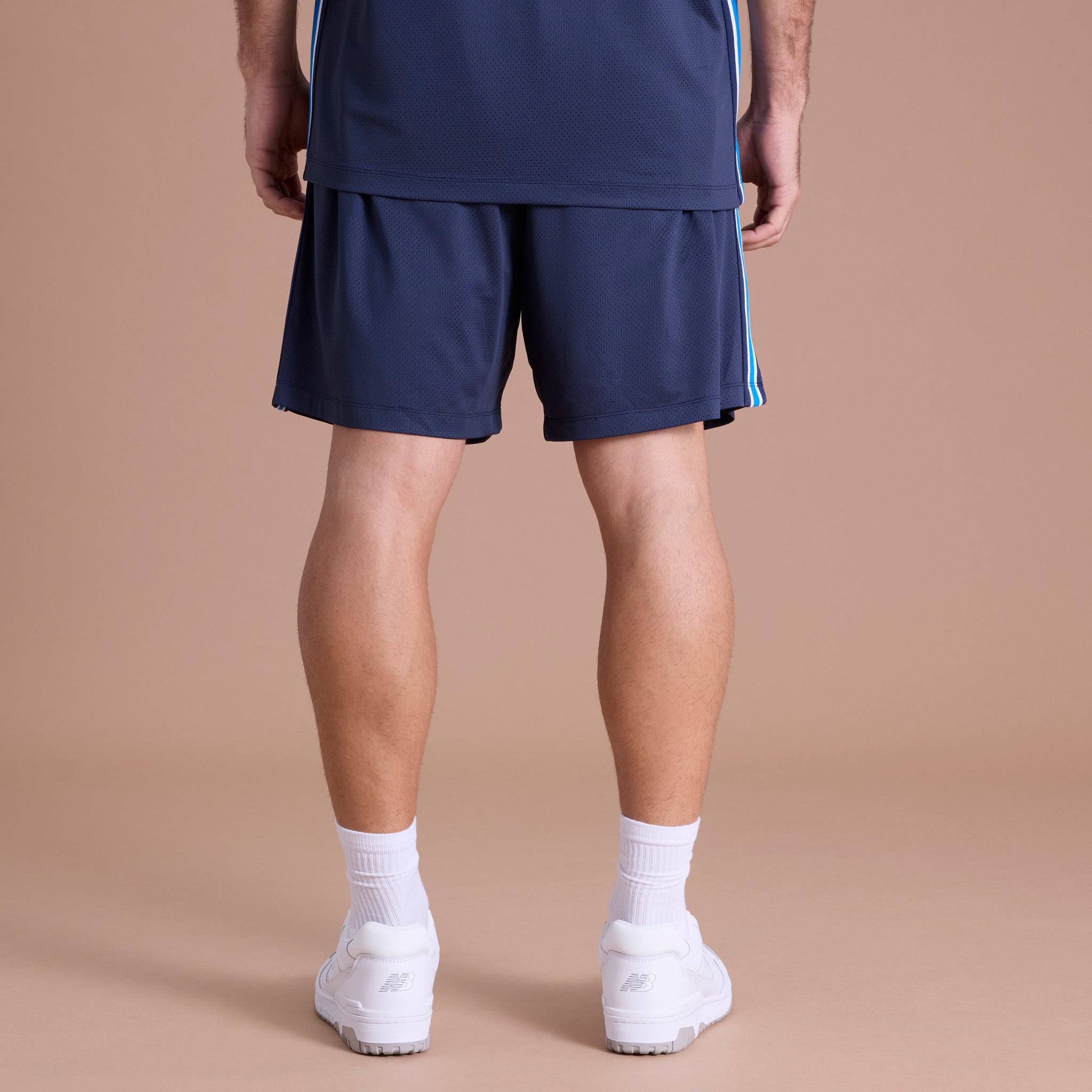 Stay cool with these Mesh Shorts, crafted from lightweight micro mesh fabric with a breathable self-lined design for enhanced airflow and comfort. Featuring sporty striped woven tape and a woven satin label, perfect for training, courtside, or casual wear, these shorts combine signature AO performance with standout style.