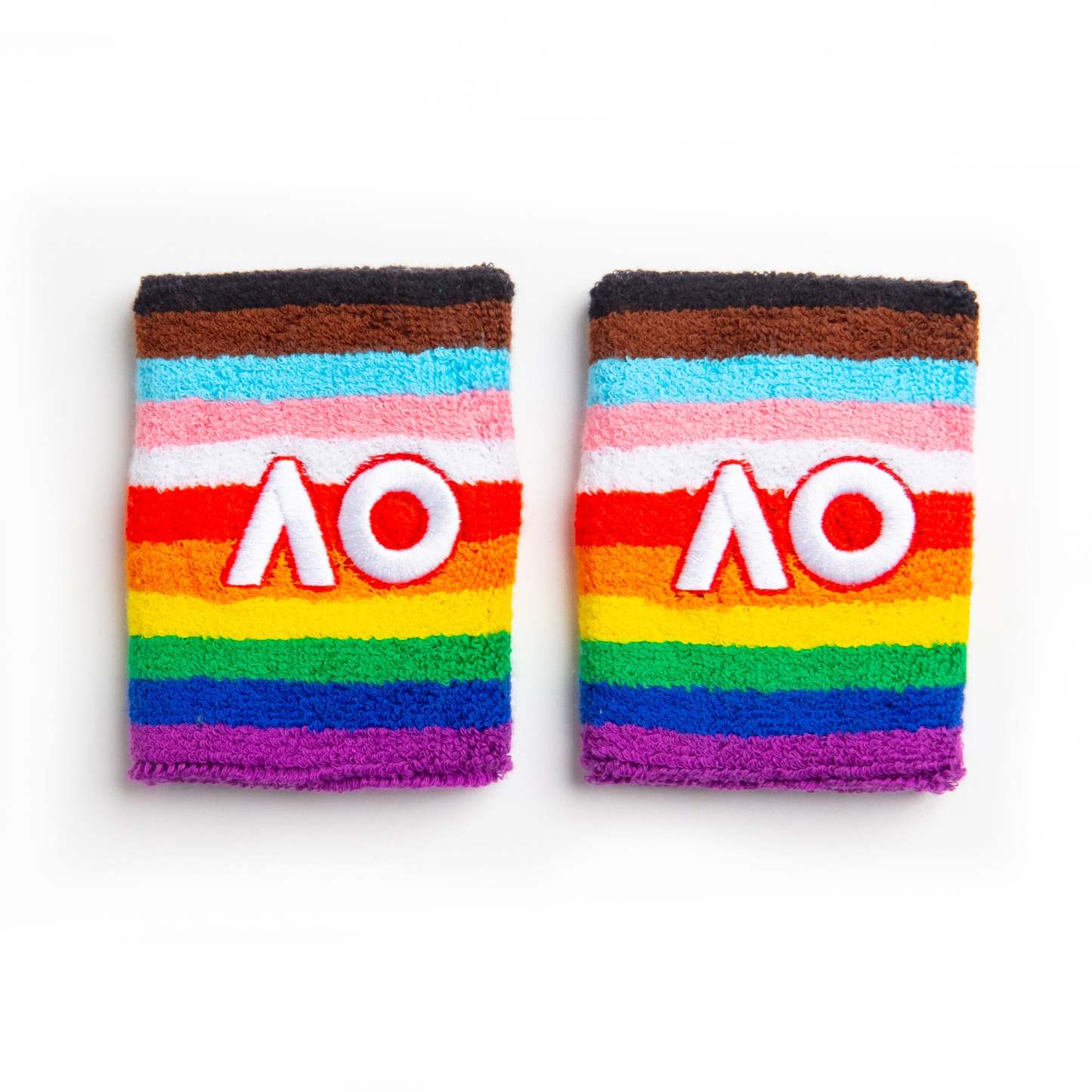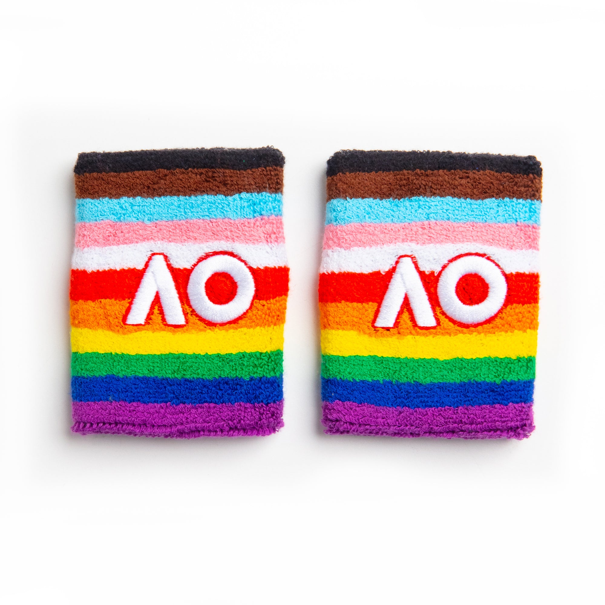 The official AO x Pride wristband is part of the Pride capsule collection. It features the iconic AO logo on a rainbow, symbolising the pride flag.