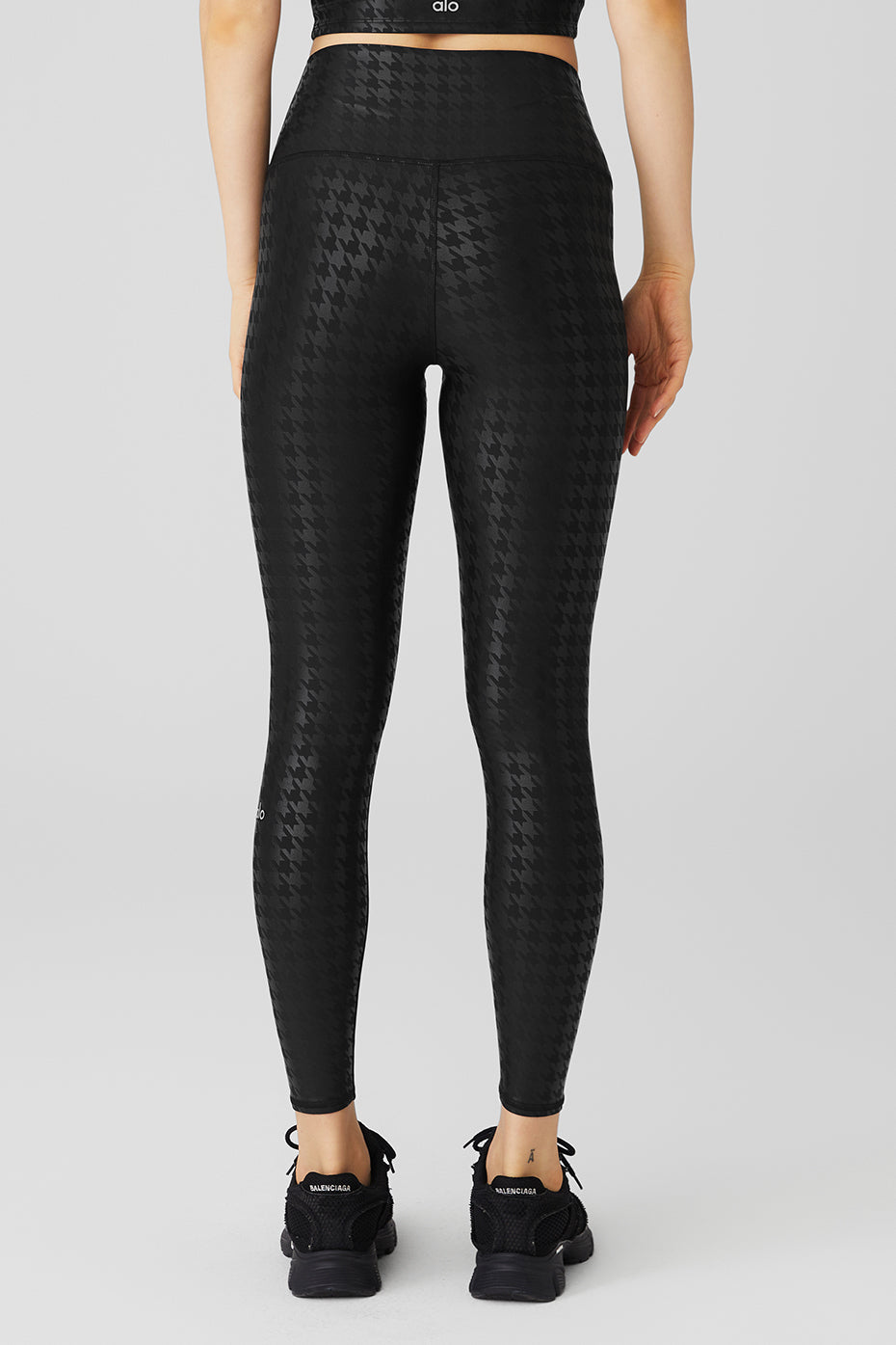 Make big moves in a workout-to-wear-out ready statement legging. With a tonal houndstooth print, foil overlay and sculpting, high-waisted fit, the Airlift High-Waist Glimmer Houndstooth Legging is a fave for any practice and perfect for street. A light-catching allover glimmer detail really makes this pair pop! Pair it with the matching bra and a cool oversized jacket.