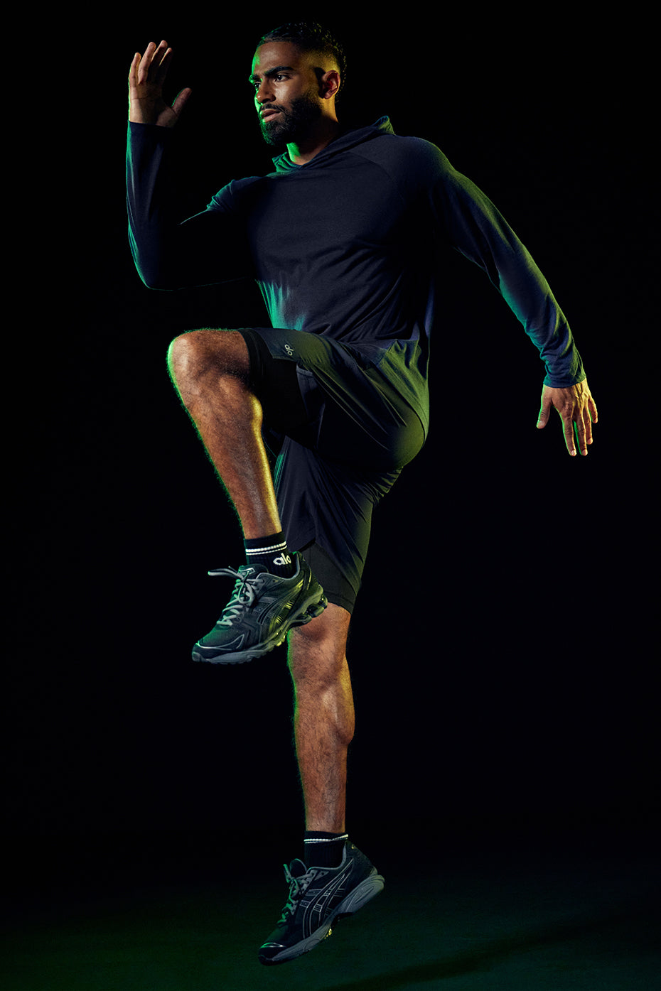 So soft — but still equipped to handle heavy-duty workouts. The tech-equipped Core Hooded Runner is made of sueded, tri-blend jersey that wears well all day. Raglan sleeves make this a perfect solo or layered player.