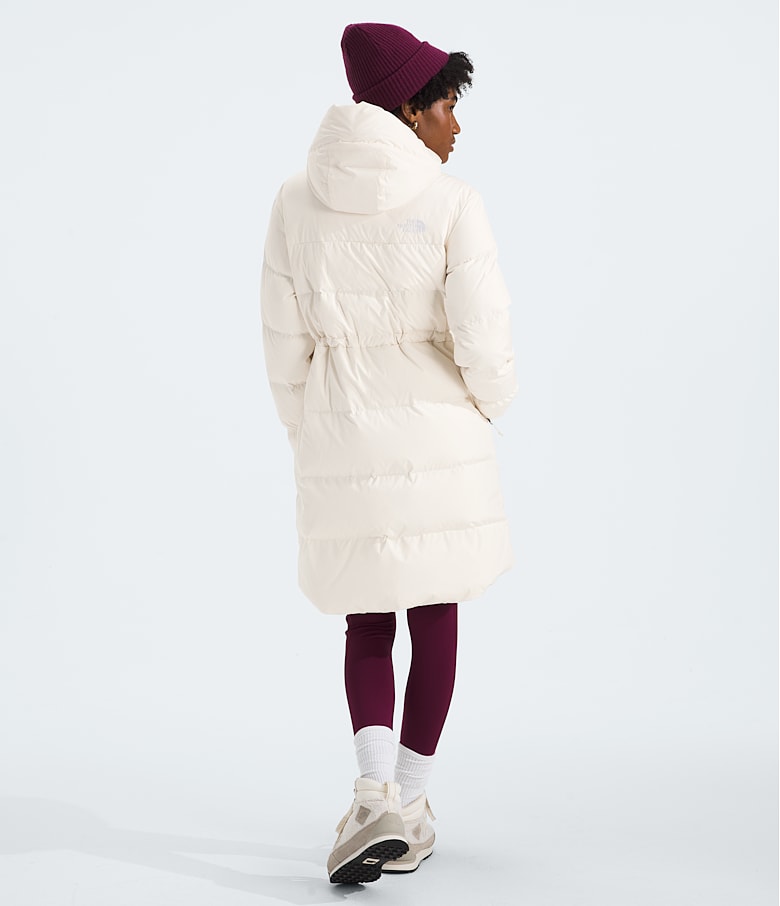 The Women's Explore Farther Parka has a customizable silhouette with a cinchable drawcord at the waist. Other features like 600-fill down, rounded hems and zippered hand pockets make it an easy choice for colder climates.