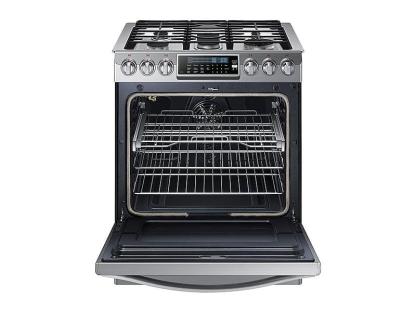 Slide-In DesignEasily Replace Your Freestanding Range For A Sleek, Customized, Built-In Look For Your Kitchen, Without Having To Remodel. The Slide-In Design Appears Customized With Cabinetry. 5.8 Cu. Ft. Large CapacityA 5.8 Cu. Ft. Large Capacity Oven Allows You To Cook Multiple Dishes At Once. Easily Accommodate A Big Roast, Multiple Casserole Dishes Or Several Racks Of Cookies With The Largest Capacity Slide-In Range In The Industry*. Three Oven Racks - Two Wire And One Split - Allow You To Prepare Enough Food For Large Gatherings. True Dual Power BurnerTrue Dual Power Burner Allows For Even Heat Distribution And Reduced Cooking Time. It Features Two Independent Heating Elements With Power Ranging From 19,000 Btu To 700 Btu, Allowing You To Go From A Rapid Boil To A True Simmer. Flexible CooktopA Specialized 5 Gas Burner Cooktop Ensures You Can Simultaneously Cook Multiple Dishes Using Different-Sized Pans. For Added Convenience, The Oval Burner Can Be Used For Oversized Pots And Pans. True ConvectionCook Food Faster And More Evenly With A Heated Fan System That Is Great For Baking And Broiling. Temperature Is Distributed Thoroughly And Food Cooks Evenly For Tastier Results Each Time. Reversible Cast Iron GriddleCook A Variety Of Breakfast Foods Or Grilled Sandwiches At Once On The Removable Stovetop Griddle. The Reversible Cast Iron Griddle Allows You To Cook Using Either A Smooth Or Ridged Surface And Is Included With Purchase. Custom Wok GrateEasily Accommodate A Round Bottom Wok On The Custom Wok Grate. Its Circular Design Fits Snugly Around The Burner So That Heat Is Quickly And Evenly Distributed And You Can Enjoy Delicious Stir Fried Food. The Custom Wok Grate Is Included With Purchase. Guiding Light ControlsA Premium Design And Intuitive Controls Offer Simple, Step-By-Step Instructions For Choosing Cooking Options. Control Temperature And Time Settings, Select Cooking Functions And Program Your Favorite Recipes. Only Cooking Options That Are Able To Be Selected Illuminate And Controls Go From Left To Right, Eliminating Having To Go Back And Forth. Gliding RackEasily Slide Heavy Items Like Large Turkey Roasters In And Out Of The Oven. A Unique Ball Bearing Design Allows The Rack To Glide With Ease, Allowing You To Check On Your Foods During Cooking.
