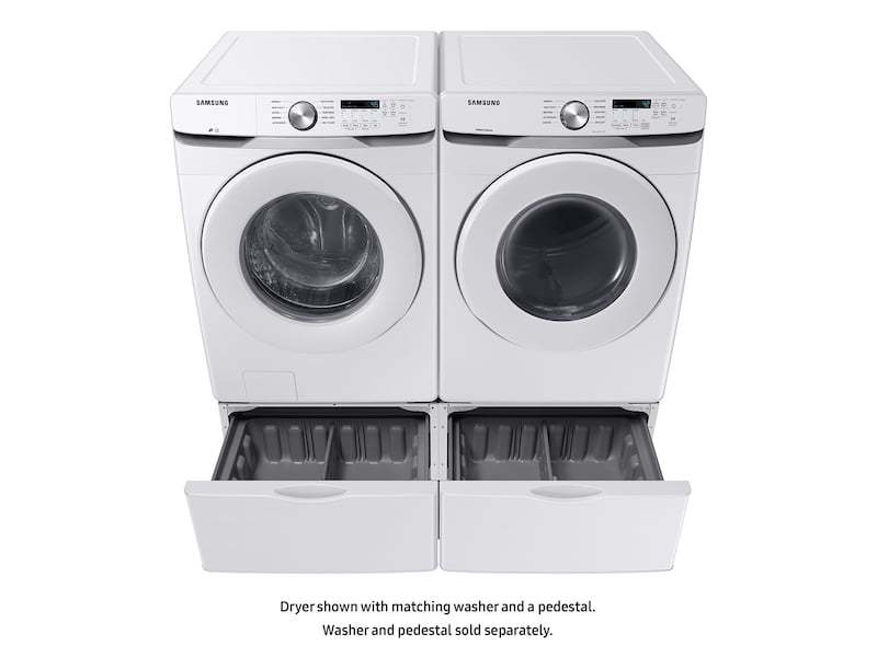 Worry-Free DryingEnsure Your Clothes Are Properly Dried Without Constantly Checking. Sensor Dry Automatically Optimizes The Time And Temperature Of Your Drying Cycle To Protect Your Clothes From Heat Damage, While Avoiding Excess Energy Use. Fit More For Fewer LoadsOur Large Capacity, 7.5 Cubic Foot Drum Means You Can Dry More Items In A Single Load And Spend More Time Doing The Things You Love. Easy To TroubleshootEasy Troubleshooting From The Convenience Of Your Smartphone.* Smart Care Interacts With Your Washer And Dryer To Perform An Immediate Diagnosis And Offer Quick Solutions. Interior Drum LightPut An End To Stray Socks Or Smaller Laundry Items That Are Hard To Spot! An Internal Drum Light Brightly Illuminates Your Laundry And The Rest Of The Interior So You Can Quickly And Safely Check Your Dryer'S Contents. Flexible OpeningChoose The Direction Your Dryer Door Opens To Better Suit Your Laundry Room Layout. Stop The FluffStop Worrying About Lint Or Fluff Building Up And Blocking Your Dryer'S Air Intake. The Filter Check Indicator Light On The Control Panel Will Provide You With A Helpful Reminder When It Is Time To Clean The Filter, So Your Dryer Maintains Optimal Performance. Easier Use, For EveryoneWith A Samsung Riser,* Your Washer Or Dryer Is Compliant With The Americans With Disabilities Act (Ada), Making Loading And Unloading Much Easier. Also Aiding The Visually And Hearing Impaired, Audio Assistance Plays A Different Sound For Each Option And Braille Is Next To Key Control Panel Buttons. Perfect PairSamsung Washers And Dryers Team Up To Make Light Work Of Laundry Day, While Looking Great In Your Laundry Room. Position Them Side By Side Or Stack Them For A Perfect Fit In Tighter Spaces.