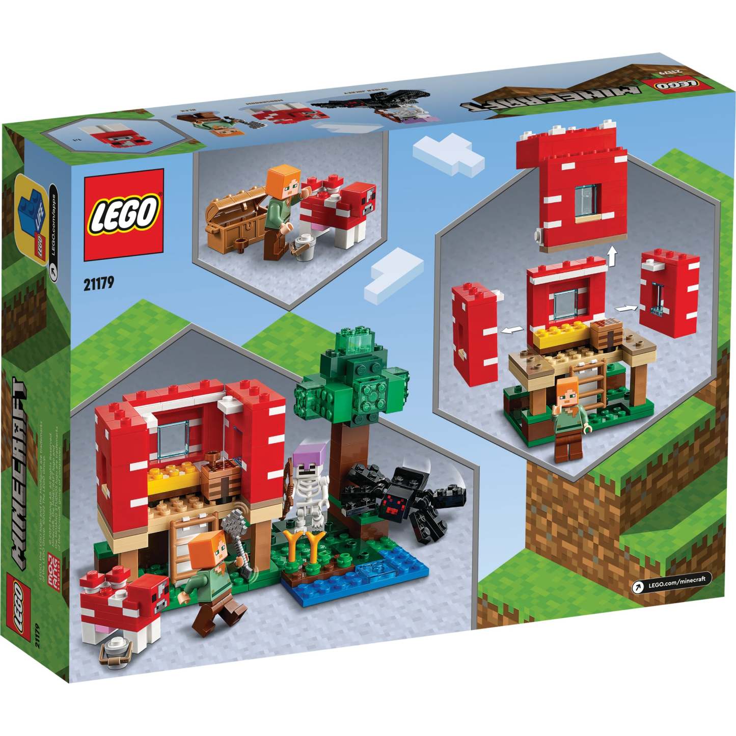 - Minecraft® adventures – The creative play possibilities are endless, inside and outside the fun-packed LEGO® Minecraft The Mushroom House (21179)