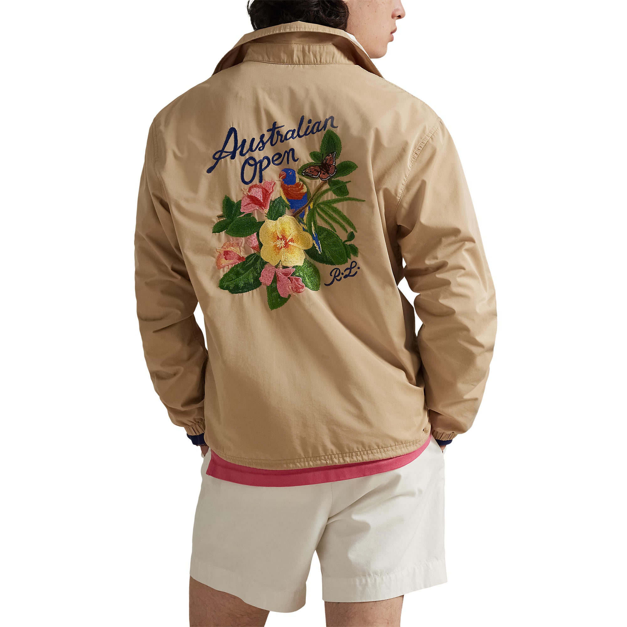 Part of our commemorative Australian Open capsule collection for 2026, this unisex twill jacket celebrates the tournament’s location with intricately embroidered hibiscus flowers as well as a monarch butterfly and a rainbow lorikeet—all of which are native to Australia.