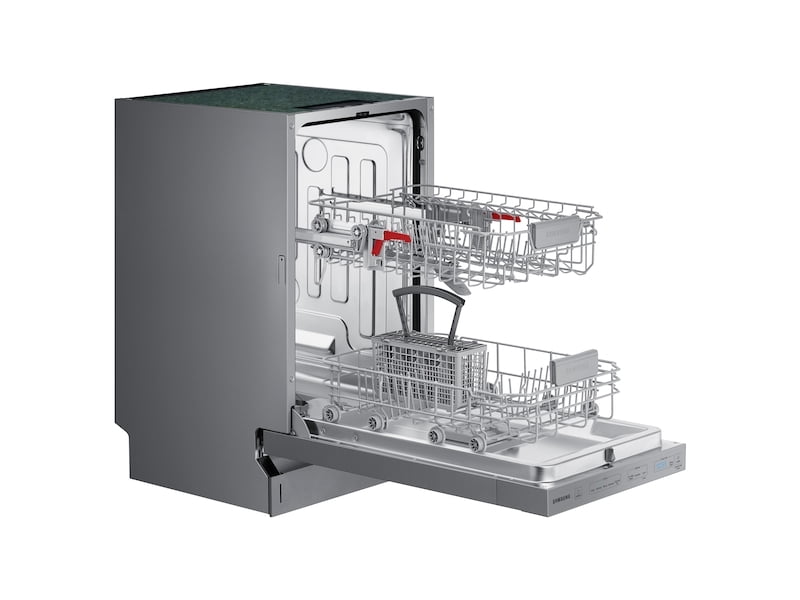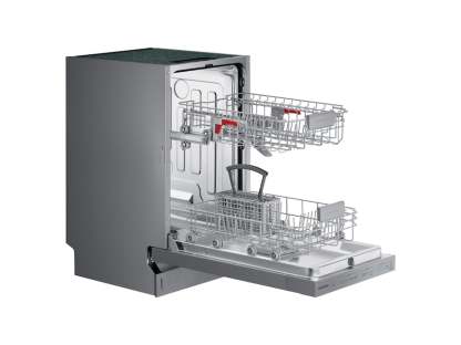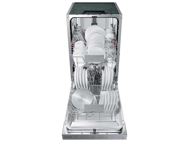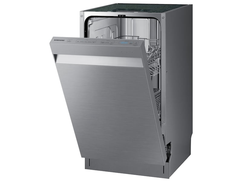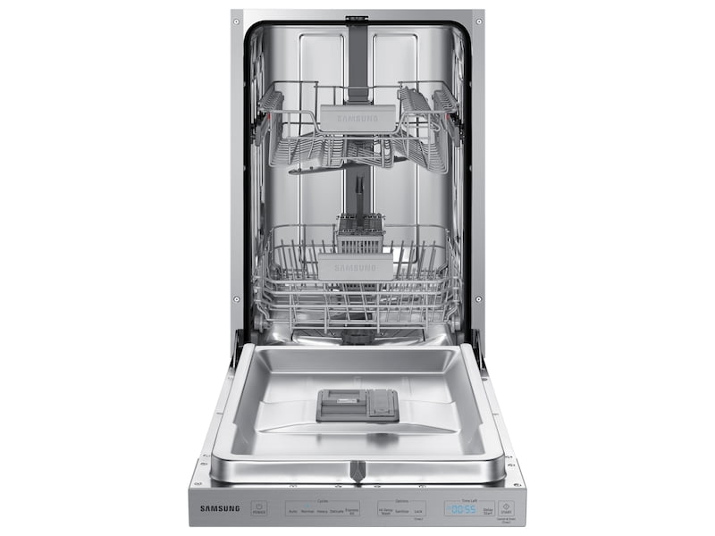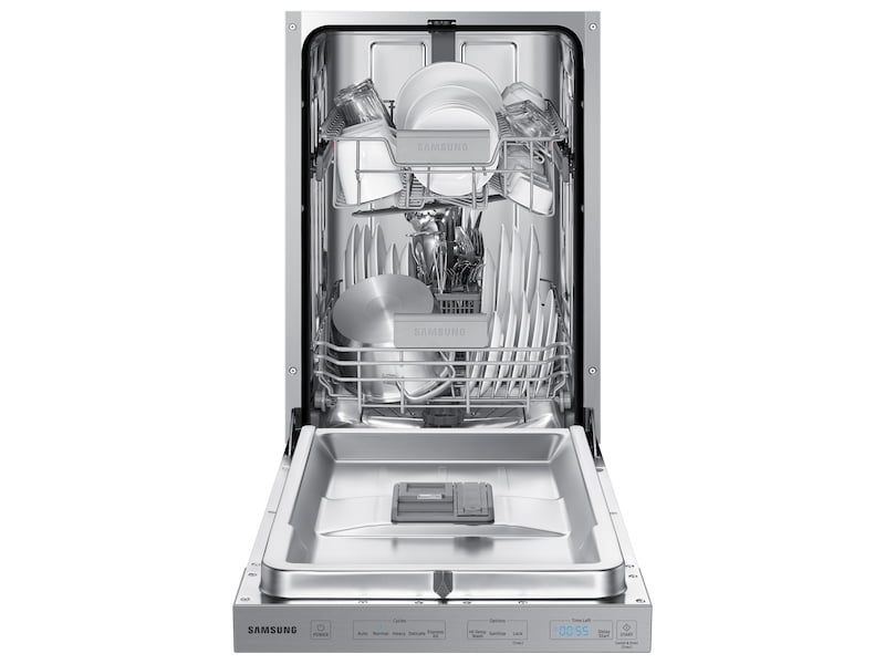 Samsung's StormWash Dishwasher is packed with unique features that make it the perfect addition to any kitchen. Its StormWash system makes use of powerful rotating spray jets to clean at every angle, even extremely hard-to-reach areas, all while operating at a very low 46 dBA sound level. Its AutoRelease door drying system automatically pushes the door ajar at the end of each cycle to release steam, allowing air to circulate for a quicker dry. A 3rd rack provides more space for utensils and silverware, whereas its adjustable upper rack permits effortless cleaning for tall items.