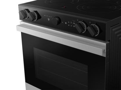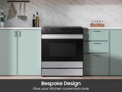See What'S Cooking, Right From Your SmartphoneMonitor Your Cooking With Smart Oven Camera Inside. It Live Streams Video To Your Smartphone So You Can Easily Check On Meals As They Cook Anytime, Anywhere. Take Snapshots And Make And Share Time-Lapse Videos To Your Social Media To Show Off Your Culinary Skills. Always Know When Your Cooktop Is OnPrecisely Control And Ensure Proper Activation Of Your Cooktop With The Illuminated Precision Knobs That Must Be Pinched In Before The Knobs Can Be Pushed And Turned. This Range'S Knobs Will Also Light Up When In Use To Let You Know That Your Cooktop Is On. Elevate Your Kitchen Aesthetic With Lcd Display And Bespoke DesignBring Home The Beauty Of A Lcd Display, Modern Colors And Finishes And Surfaces That Stay Glossy, No Matter What You Throw At Them. Unbelievably FastWith Samsung'S 3600 W Express Boil,™ No Burner Is More Powerful. Rapidly Go From High Heat For Boiling Water And Searing Meat, To A True Simmer With The 3600 W Express Boil™. Ideal For Melting Chocolate Or Making Sauces. Does The Hard Work For YouGet Help From Your Oven With Self Clean. The Self Cleaning System Deeply Cleans Your Oven With High Heat That Breaks Down Grease And Food Residue. Use Steam Clean For A Lighter Cleaning Job That'S Done In 20 Minutes Get Smarts, Connectivity And Convenience In One RangeBespoke Slide-In Electric Ranges Are Designed To Elevate How You Cook And Reimagine Everyday Routines With Connectivity And Convenience. Gourmet Cooking Results At HomeLock In Flavor And Moisture And Avoid Overcooking With Air Sous Vide. Precise, Controlled Heat And Airflow Within The Oven Give You Gourmet Cooking Results At Home. Perfect For Fish, Poultry, And Vegetables. Healthier Cooking With A CrunchEnjoy Healthier Fried Foods Without Relying On Other Small Appliances With Air Fry Built Right Into Your Oven. Air Fry Tray Included. Nutritious And Delicious VegetablesQuickly Cook Vegetables To Crispy Perfection Without Pre-Heating. Faster, More Even Baking Than ConvectionConvection+ Lets You Cook Your Food Faster And More Evenly Than Standard Convection By Circulating Only Hot Air Throughout Your Oven.