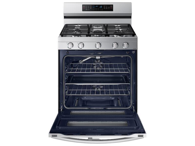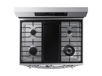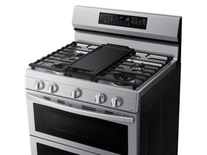 Elevated DesignOur Stainless Steel Design Completely Covers All Cooktop And Backguard Surfaces, Elevating The Look Of Any Kitchen. Ergonomic Knobs Are Easy To Grip Comfortably For Precise Temperature Control. If That'S Not Enough, Tinted Glass On The Oven Door Gives Your Range The Upgrade You Deserve. Make Cooking Simple With Smart TechnologyMonitor Your Cooktop And Adjust Time And Temperature Of Your Oven From Wherever You Are With Your Smartphone.* Conveniently Use Voice To Control Your Oven, Whether It'S Amazon Alexa, Bixby Or Google.** Flex Duo™Use The Full Oven For A Large Roast Or Split It Into Two Smaller Ovens That Can Cook At Different Temperatures, Saving Both Time And Energy. No-Preheat Air Fry - Healthier Cooking With A Crunch*Cooking With A Crunch Just Got Healthier With Air Fry.* Using Little To No Oil, You Can Quickly Prepare Your Favorite Fried Foods Right In Your Oven. No Preheating Required. Air Fry Tray Included. Save Time With Convection+Powerful Convection+ Saves You Time By Cooking Food Fast And More Evenly. Fan With A Heated Element Circulates Hot Air In The Oven For Perfect Baking And Roasting. Cook Enough For The Whole CrewThis Large 6.0 Cu. Ft. Oven Can Fit Multiple Dishes At One Time And Can Easily Accommodate Big Casserole Dishes And Large Roasting Pans. Unbelievable Power For All Your NeedsBoil Fast With A Dual-Ring Burner That Has Unbelievable Power. Whether It'S Boiling A Pot Of Water Or Searing Meats Evenly And Fast, This Burner Has The Power You Need For What You Like To Cook. All ShineFingerprint Resistant For An Everyday Beautiful Finish. A Cooktop That Gets It All Done!This 5-Burner Cooktop Includes 2 Power Burners And Continuous Cast Iron Edge-To-Edge Grates, Allowing You To Easily Slide Your Pots And Pans Across More Usable Cooktop Space And Adding A More Premium Look To Your Kitchen. Use The Simmer Burner To Cook Your Favorite Sauces. Cooking Simplified With Easy Preset ButtonsPrepare A Variety Of Foods With The Aid Of Easy Preset Buttons. With A Simple Push Of A Button, You Can Proof Bread, Dehydrate Your Favorite Jerky And Keep Meals Warm In The Oven With Precision. And If You Have A Favorite Recipe, Conveniently Save The Settings In The Samsung Smartthings Mobile App And Send Them To Your Oven.* Grill Breakfast, Lunch And DinnerA Removable Nonstick Griddle Is Included With Your Cooktop That'S Perfectly Sized To Fit The Griddle Burner. Grill Your Family'S Favorite Foods And When Done, Conveniently Store The Griddle In The Range Storage Drawer.
