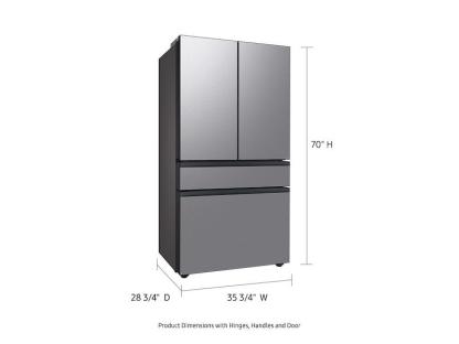 Customizable Door ColorsCustomize The Design Of Your Refrigerator With Changeable Door Panels. Choose From A Variety Of Colors And Two Finishes To Create A Space That Fits Your Style. Ice Your WayEnjoy Your Favorite Beverage With Your Choice Of Ice. Select From Cubed Ice Or Ice Bites™ That Chill Your Drink Faster. Customize Your Middle Drawer TemperatureThe Flexzone™ Drawer Is Customizable With 5 Different Temperature Settings. From Refrigerator To Soft Freeze, This Middle Drawer Can Store Everything From Fruit And Vegetables To Your Favorite Meat & Seafood. Always Ready, Always FilledA Built-In Pitcher That Automatically Refills With Filtered Water And The Option To Infuse With A Flavor Of Your Choice. Designed For A Modern LookFlat Panel Door Design With Easy-To-Open Recessed Handles Blends Into Your Kitchen To Give You A Modern Look. Keep Your Fruits And Vegetables FreshTwo Large Drawers That Are Perfect For Storing Fruits And Vegetables. Twin Cooling PlusIndependent Fridge And Freezer Controls Keep Food Fresher Longer. Consistent TemperatureThe Stainless Steel Paneling Helps Maintain Consistent Temperature Throughout The Refrigerator. Stay Connected Anywhere, Anytime Wi-FiUse The Samsung Smartthings App* On Your Smartphone To Control The Temperature Of Your Refrigerator And Monitor It Remotely. Measure For A Perfect FitBespoke 4-Door French Door Refrigerators Have Unique Height And Depth Dimensions. Measure Your Installation Clearances And View Specifications To Ensure It Will Fit Your Space.