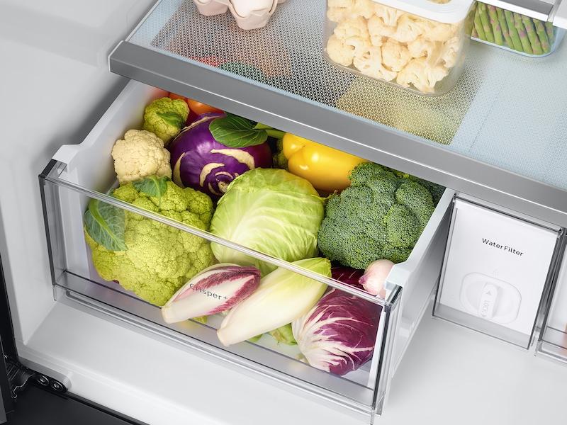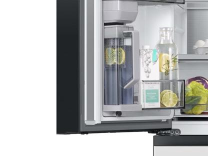 Customizable Door Colors Customize The Design Of Your Refrigerator With Changeable Door Panels. Choose From A Variety Of Colors And Two Finishes To Create A Space That Fits Your Style. More Space, More Ways To Stay Organized With 29 Cu. Ft. Of Capacity, This Spacious Refrigerator Is Designed For Convenience, Offering Flexibility And Organization To Store And Access All Your Favorite Foods With Ease. Ice Your Way Enjoy Your Favorite Beverage With Your Choice Of Ice. Select From Cubed Ice Or Ice Bites™ That Chill Your Drink Faster. Customize Your Middle Drawer Temperature The Flexzone™ Drawer Is Customizable With 5 Different Temperature Settings. From Refrigerator To Soft Freeze, This Middle Drawer Can Store Everything From Fruit And Vegetables To Your Favorite Meat & Seafood. Always Ready, Always Filled A Built-In Pitcher That Automatically Refills With Filtered Water And The Option To Infuse With A Flavor Of Your Choice. Designed For A Modern Look Flat Panel Door Design With Easy-To-Open Recessed Handles Blends Into Your Kitchen To Give You A Modern Look. Keep Your Fruits And Vegetables Fresh Two Large Drawers That Are Perfect For Storing Fruits And Vegetables. Twin Cooling Plus Independent Fridge And Freezer Controls Keep Food Fresher Longer. Consistent Temperature The Stainless Steel Paneling Helps Maintain Consistent Temperature Throughout The Refrigerator. Stay Connected Anywhere, Anytime Wi-Fi Use The Samsung Smartthings App* On Your Smartphone To Control The Temperature Of Your Refrigerator And Monitor It Remotely.