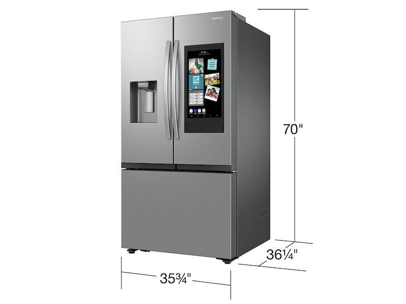 Mega Capacity Refrigerator Store More Groceries With More Room To Stay Organized. 30 Cu. Ft. Mega Capacity Refrigerator Fits Big And Bulky Items With Easy Access To Everything You Need. Family Hub™, It'S More Than A Fridge The Family Hub™ Lets You Share Pictures, Stream Music And Videos, Access Recipes And Control Your Smart Devices And Alexa All From The Fridge. More Ice ChoicesEnjoy Your Favorite Beverage With Up To Four Types Of Ice. Use The External Dispenser For Curved Or Crushed Ice, And Enjoy Two Additional Ice Makers In The Freezer Producing Cubed Ice And Samsung'S Ice Bites™ To Help Chill Your Drink Faster. Modern Design A Refrigerator That Blends Beautifully Into The Kitchen. Measure For A Perfect Fit 3-Door French Door Refrigerators Have Unique Height And Depth Dimensions. Measure Your Installation Clearances And View Specifications To Ensure It Will Fit Your Space. Full Depth Our Full Depth Refrigerators Extend Out A Few More Inches Than Our Counter Depth Models, But They Provide More Space For Groceries And Leftovers. Digital Inverter Compressor With 10-Year Warranty10-Year Warranty On The Compressor. Monitor And Control Energy UsageYou Can Monitor And Manage Your Refrigerator'S Power Usage With The Smartthings App. Get Energy Savings Tips And Alerts To Help Lower Your Electric Bill All From Your Phone. Get Useful NotificationsWith Wifi-Enabled Capabilities, Smartthings Will Alert You When The Door Is Left Open, If There Is An Unexpected Change In Temperature, Or When It'S Time To Change The Water Filter. Keeps Food FresherMetal Cooling Locks In Cold And Seals In Freshness. The Stainless Steel Paneling Helps Maintain Consistent Temperature Throughout The Refrigerator. Even Cooling From Corner To CornerAll-Around Cooling Uses Evenly Spaced Vents And Monitors Temperature Continuously To Ensure Consistent Cooling From Corner To Corner. This Keeps The Interior Temperature The Same Throughout The Fridge, So Everything Stays Fresher, Longer.