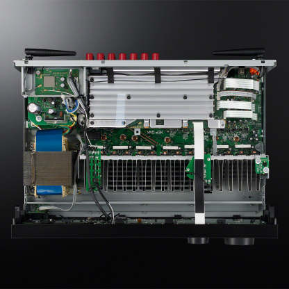 With the addition of a sub-chassis structure on the rear of the front panel, the rigidity of the receiver is increased. This results in a further reduction of vibration and improved sound quality overall.