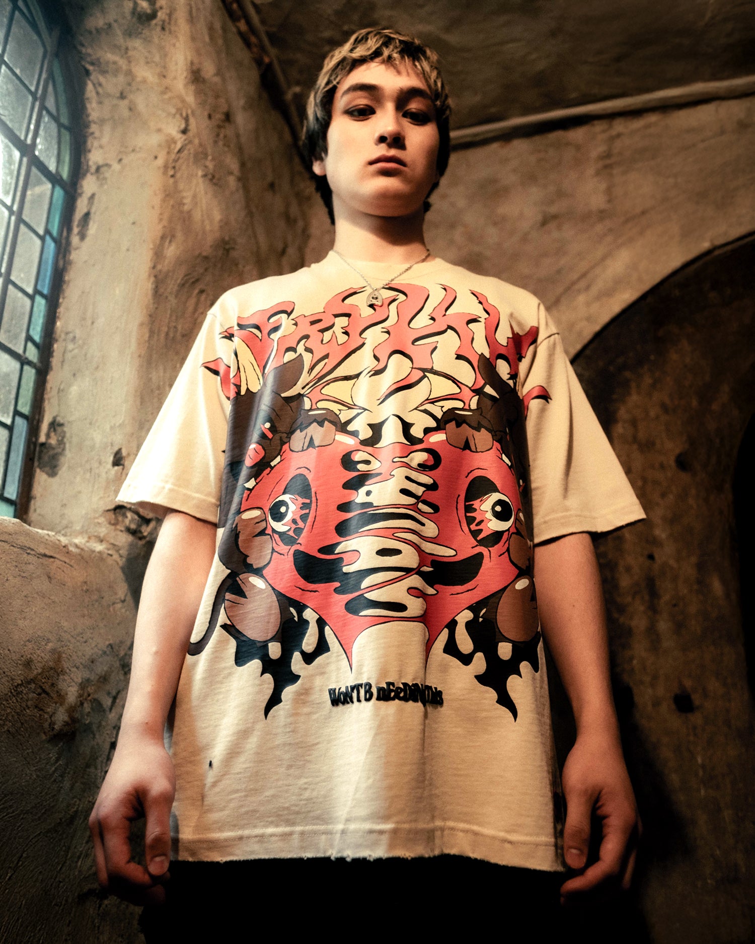 - Huge screen print graphics with puff print text accents