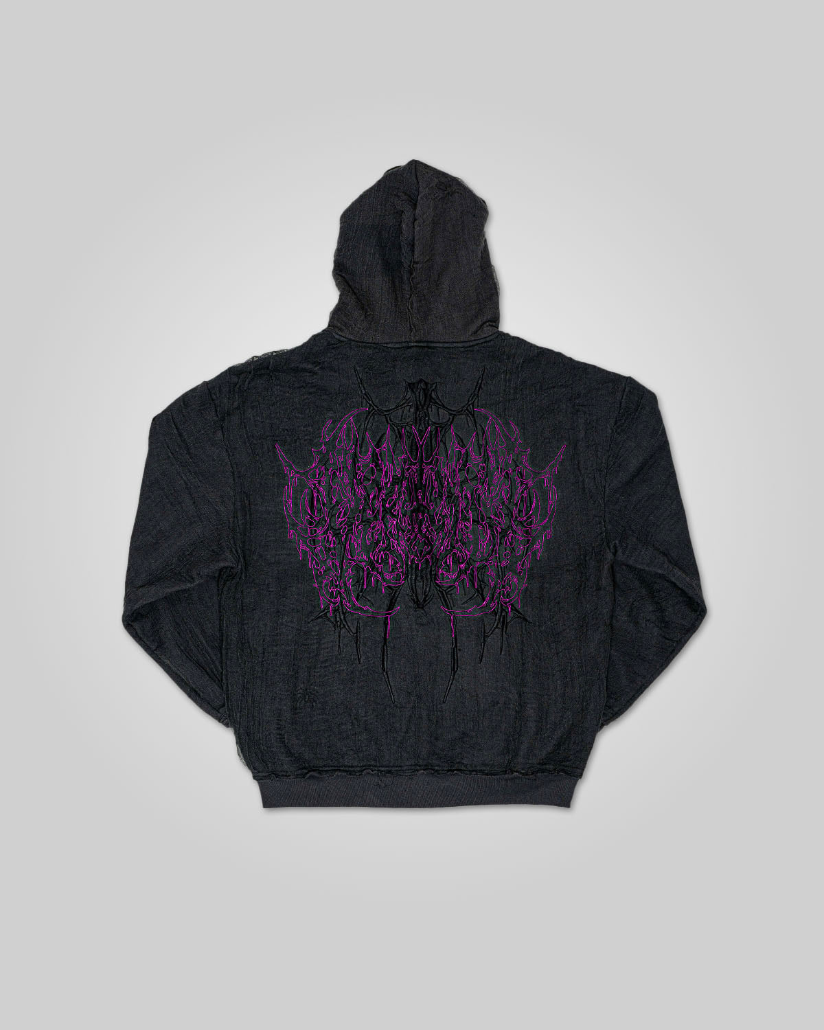 - Mesh lace overlay creates spider web effect, designed to deteriorate